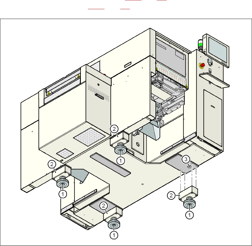 Käyttöohje SIPLACE D1i/D2i 4 Asentaminen ja käyttöönotto Alkaen ohjelmistoversiosta SR.605.03 SP2 Pa inos 10/2012 FI 4.3 Automaatin asentaminen 203 4.3.4 Piirilevyjen kuljetuskorkeuden esiasett aminen → T yönnä haarukka …