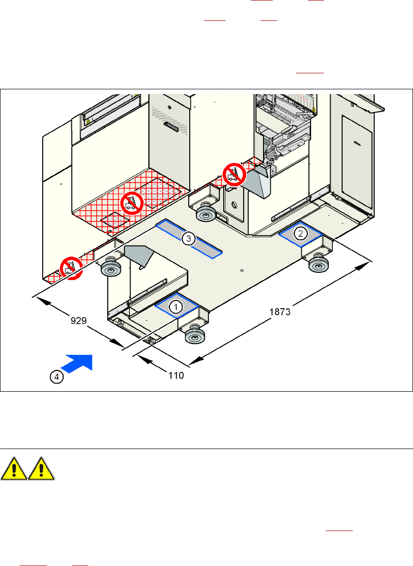 → Työnnä haarukkatrukin haarukka automaatin alle kuten kuvassa 4.3 - 6 on esitetty.