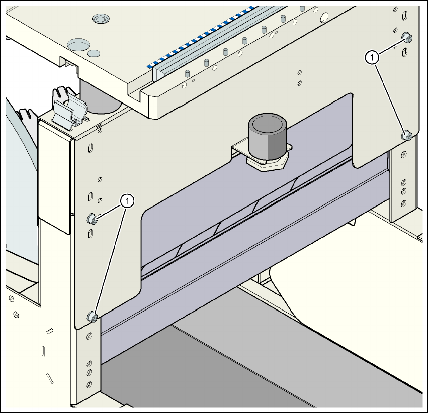 Kuva 4.4 - 8 Komponenttivaunu: PL-kuljetuskorkeus 950 mm - nähtynä takaa, kuusiokoloruuvien sijainnit ja tarkastus-