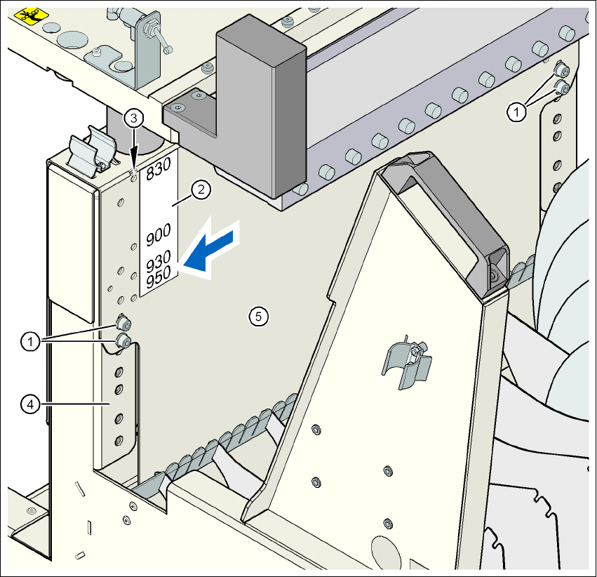Kuva 4.4 - 7 Komponenttivaunu: PL-kuljetuskorkeus 930 mm - nähtynä edestä, kuusiokoloruuvien sijainnit