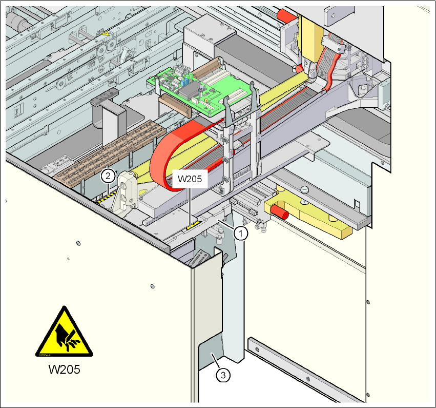 Kuva 2.2 - 4 Varoituskilpi W205 nauhaleikkaimen poikittaiskannattimessa