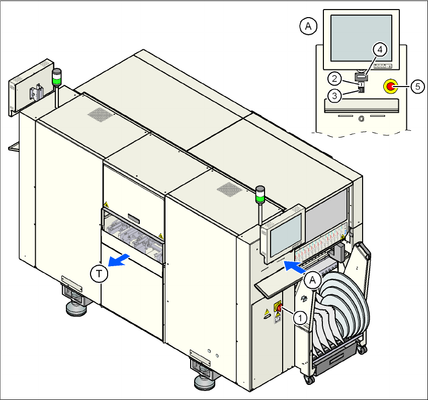 Käyttöohje SIPLACE D1i/D2i 2 Käyttöturvallisuus Alkaen ohjelmistoversiosta SR.605.03 SP2 Painos 10/2012 FI 2.6 Turvalaitteet 69 2 Kuva 2.6 - 3 Käynnistyspainikkeen (valkoinen) sijainti automaatilla (1) Käynnistyspainike …