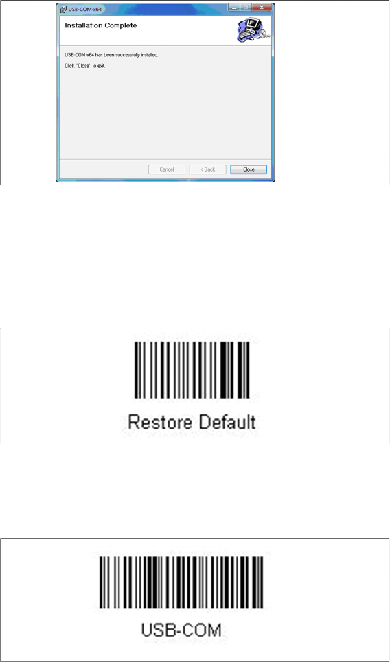 ► Scan the barcode "USB-COM" to set the interface to USB.