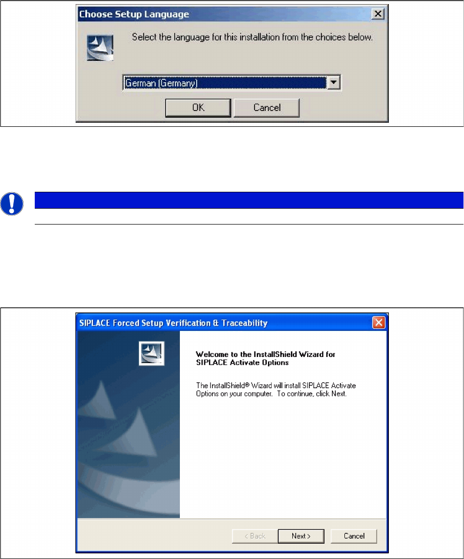 ► This starts the user-controlled installation of SIPLACE Setup Center; you are prompted to select the