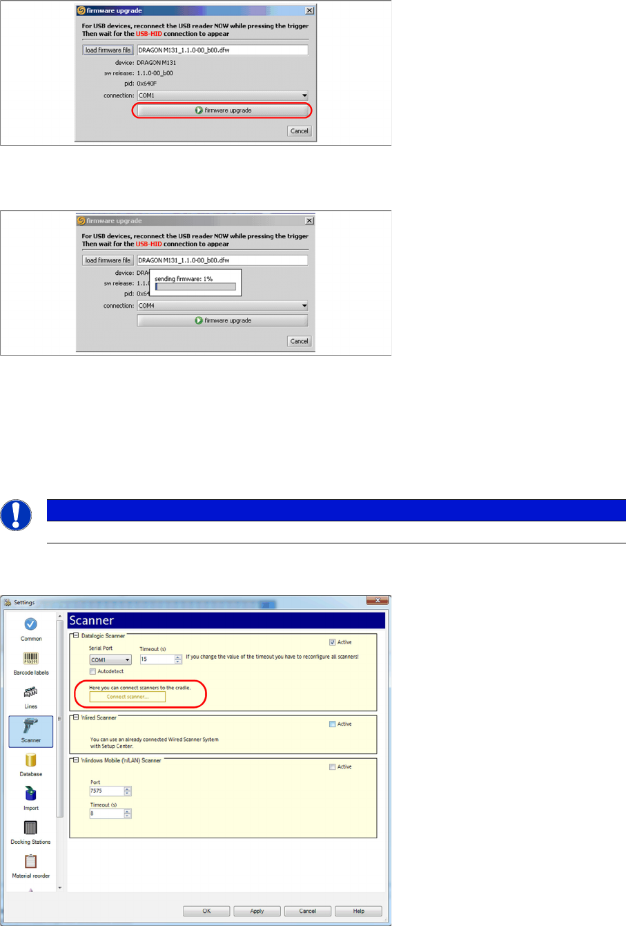 Do not scan or press keys at an already connected scanner, while configuring a new one.
