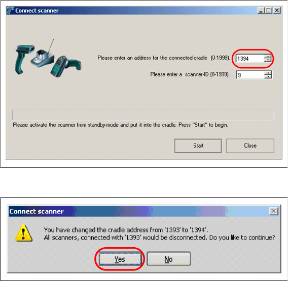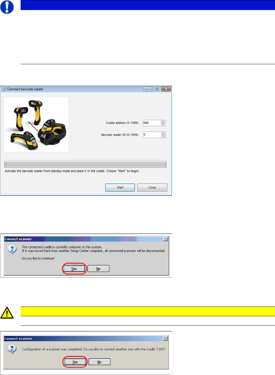 By first configuration of a scanner by this Setup Center, the cradle address is set by random.