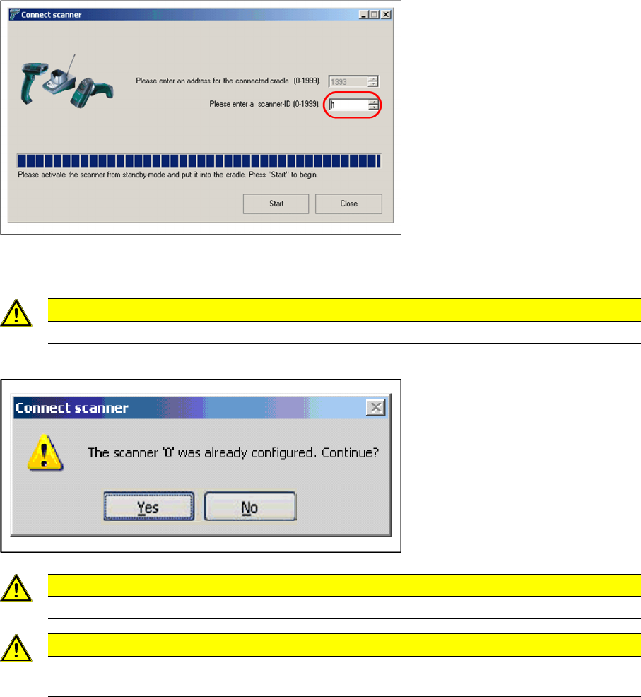 Make sure that the cradle address and scanner-ID are unique in a factory.