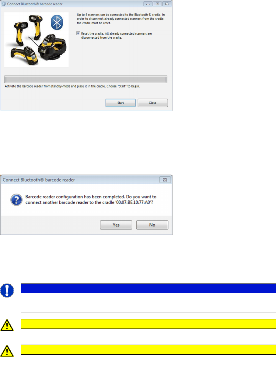 ► Put the scanner into the cradle and click Start to set up the scanner.