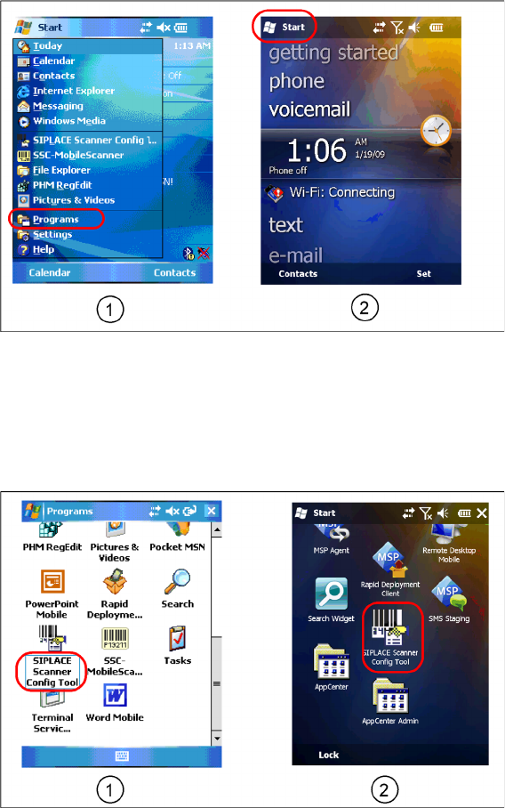 ► Select Start->Programs to show present applications on scanner.