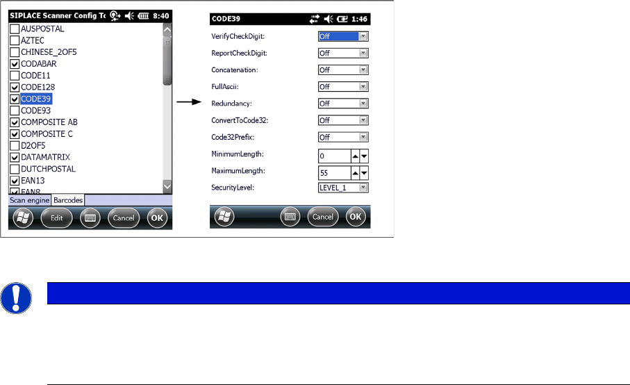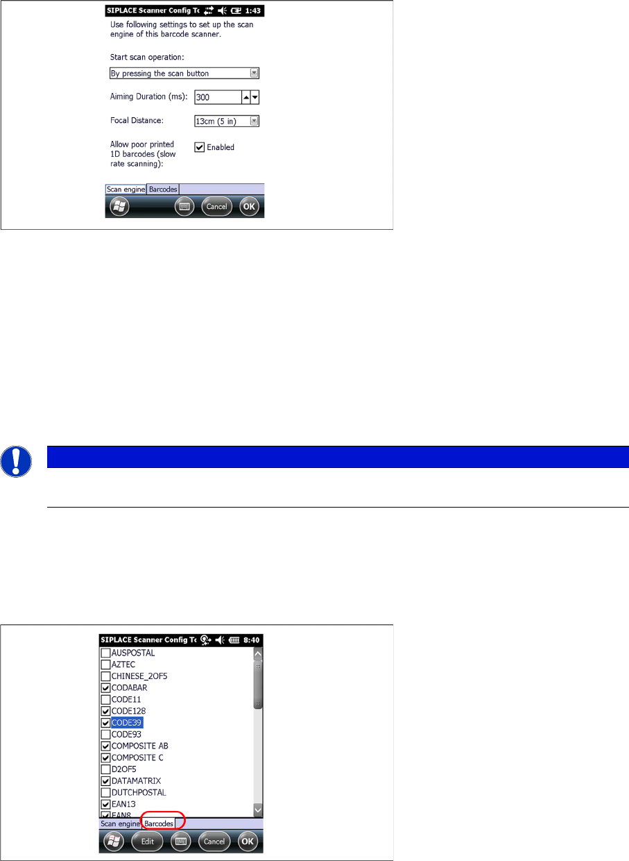 Installation Steps to Perform After Installation Motorola / Symbol MC70/MC75 Scanner Configuration 90 Installation Manual SIPLACE Setup Center 5.1 You can change the following scan para meters here: ▪ Start scan operatio…