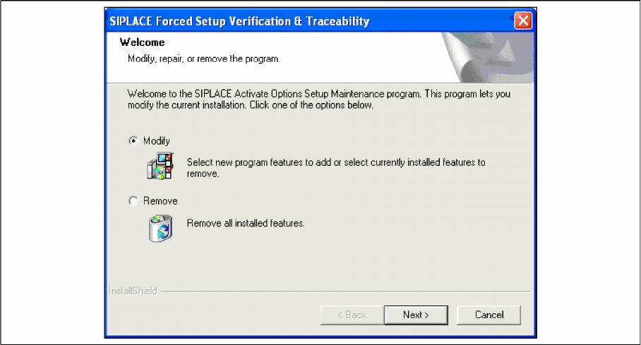 If the Setup at the software CD "SIPLACE Setup Center 3.0" is called up again, the following dialog ap