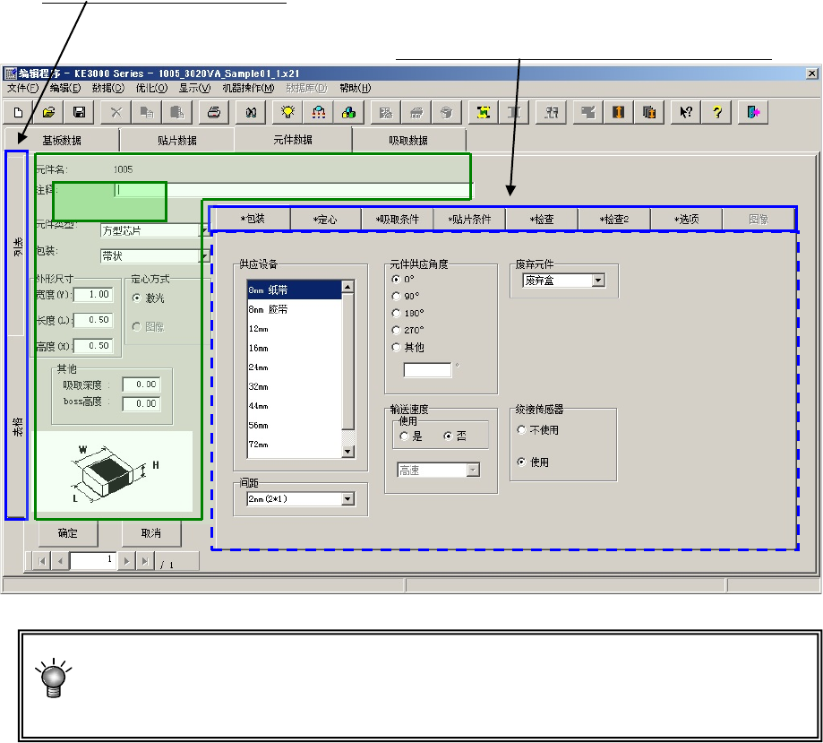 「元件数据」,是针对在「贴片数据」中输入的“元件名称”输入详细的信息数据。