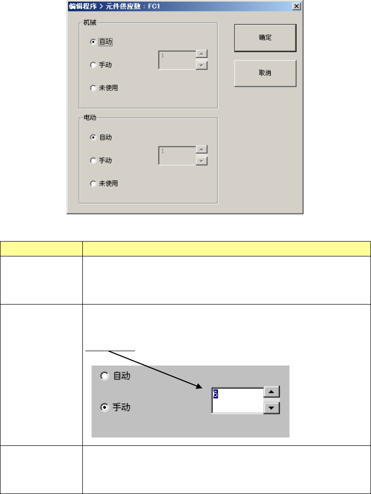 针对各种料带宽度的机械式类型和电动式类型,设置元件供应数的初始值(使用、不使用)。