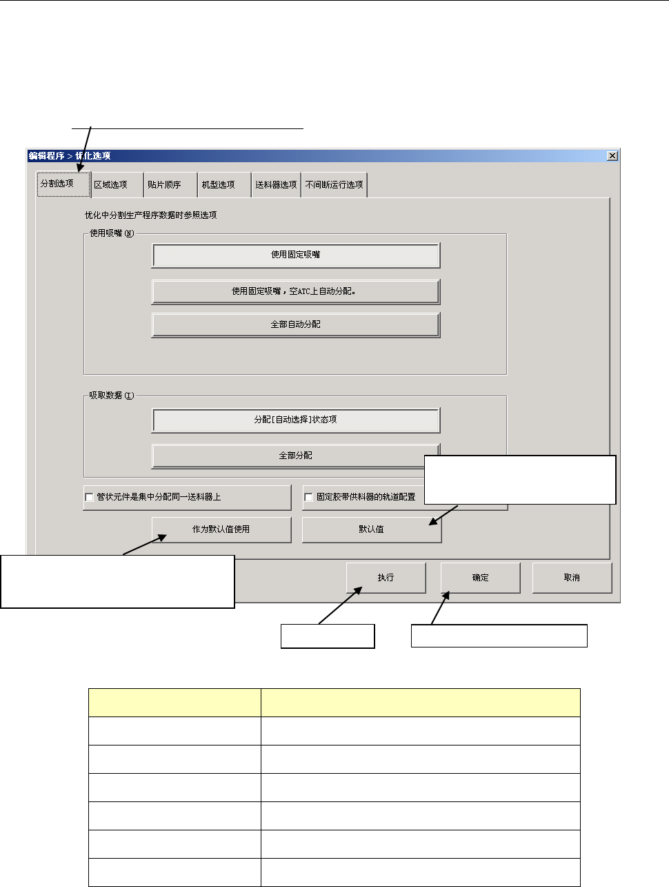 分割选项 设置分配吸嘴及吸取数据时的优化参照选项。