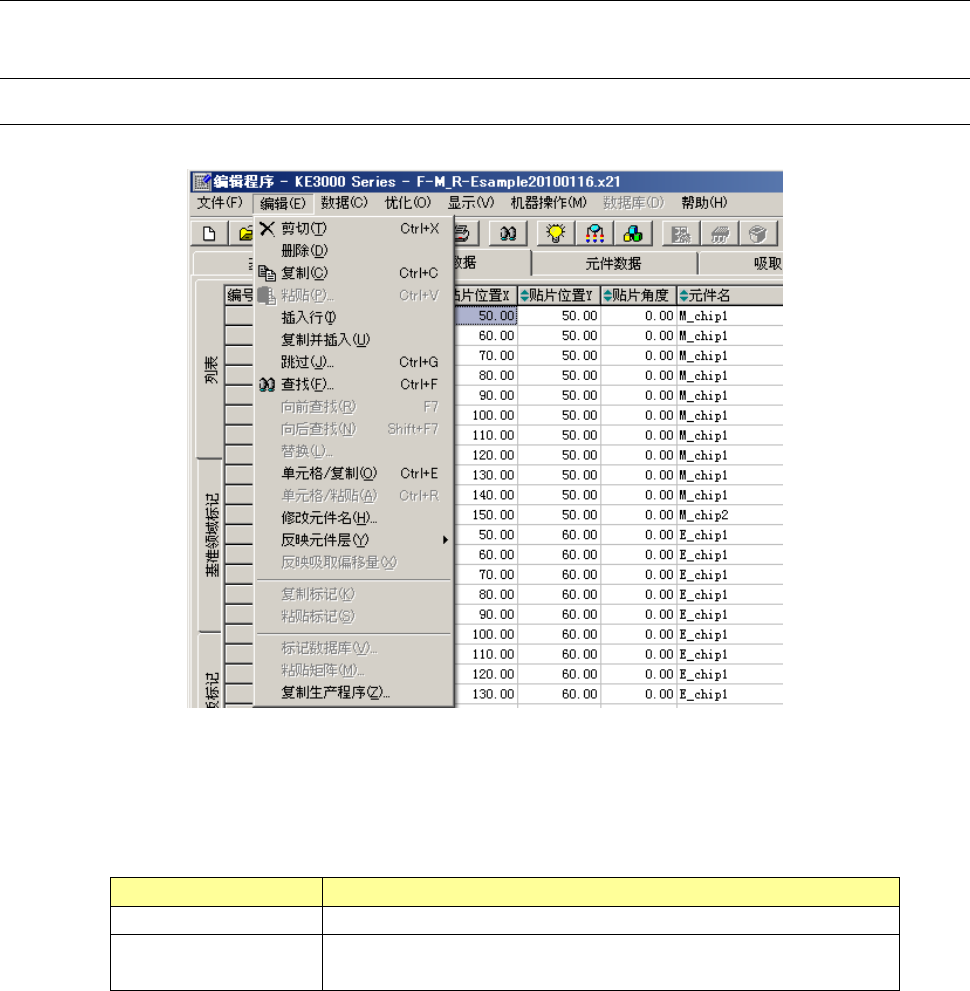 EPU 使用说明书 第 4 章 制作生产程序 4- 149 (3) 浏览模式及 初始化 读入生产程序进 行程序编辑时, 如果贴片机本体的 供给台架与生产 程序中的供 料器类型 ( 电动和 机械)不同时, 以及电动 (EF 、 RF) 的种类 不同时,将显示 供 料器配置构成 。 请用浏览模式确 认连接台架和吸 取数据的供料 器类型。 要变更程序时, 请将吸取数据初 始化。 1) [浏览]按 钮 编辑程序以浏览 模式启动,可以 确认程序的…