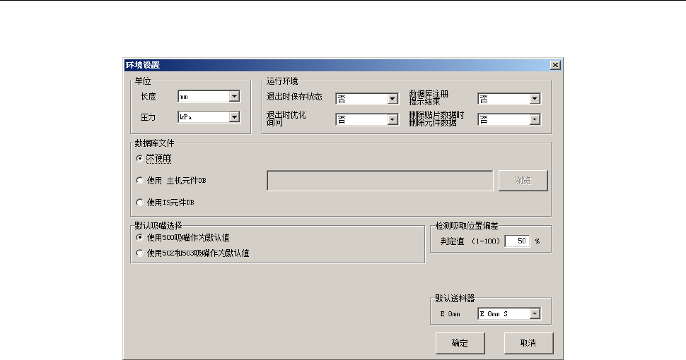 EPU 使用说明书 第 4 章 制作生产程序 4- 169 4-3- 2 环境设置 设置编辑程序的 环境。 从菜单栏中选择 「 文件 」 / 「环境设置 」,显示设置 画面。 (1) 单位 选择编辑时的长 度 、压力的显 示单位。 ● 长度 … 从 mm 、 1/1 00 mm 、 inch 中选择。 ● 压力 … 从 kPa 、 Leve l( 大气 压 ) 中选择。 (2) 运行环境 1) 退出时保存 状态 选择是否保存退 出编辑程…