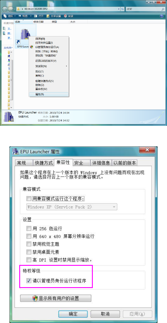 右键点击KE-3000系列 EPU的启动程序的快捷方式EPU Launcher,选择属性。