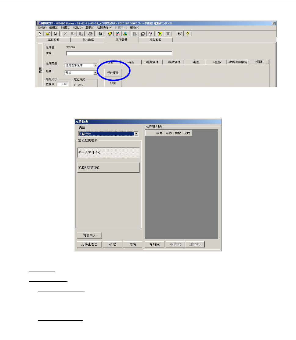 点击「元件要素」按钮后,将显示如下元件数据的制作画面。