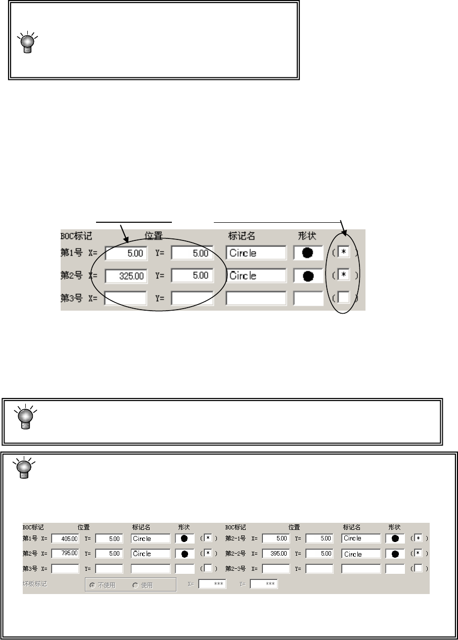输入从基板位置基准或电路原点到各BOC标记的中心位置的尺寸。