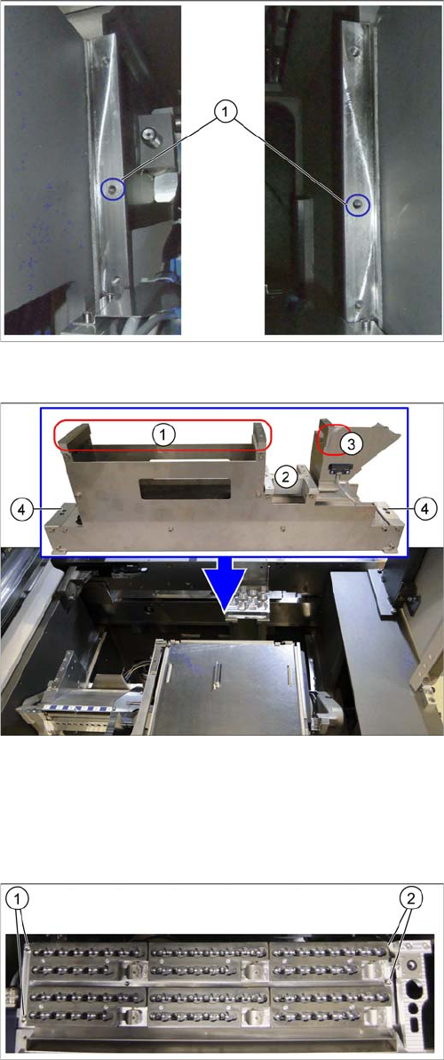 ► Remove the fastening screws at (1) to (2).