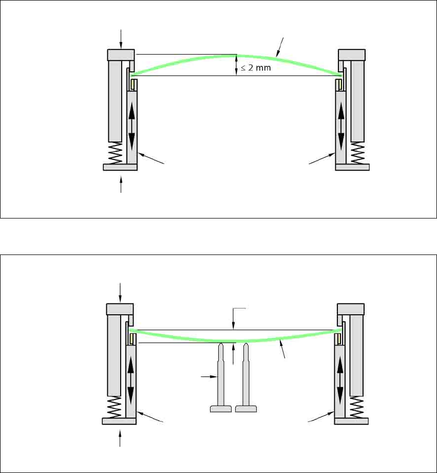 搬送方向を横切る PCB の反り、PCB 対角線長さの最大 1 %、ただし 2 mm を超えないこと。
