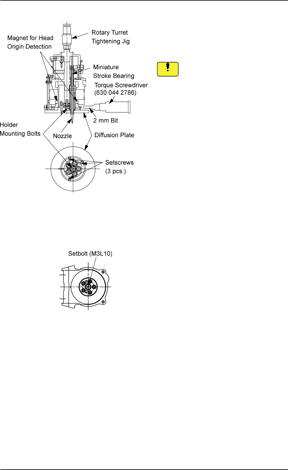 (7 ) While pressing the holder , loosen 2 setscrews on the upper area of the head adequately with the 1.5 mm bit (Standard Accessory Part: 630 1 16 3673) to detach the holder from the head. (a ) Carefully loosen 2 setscr…