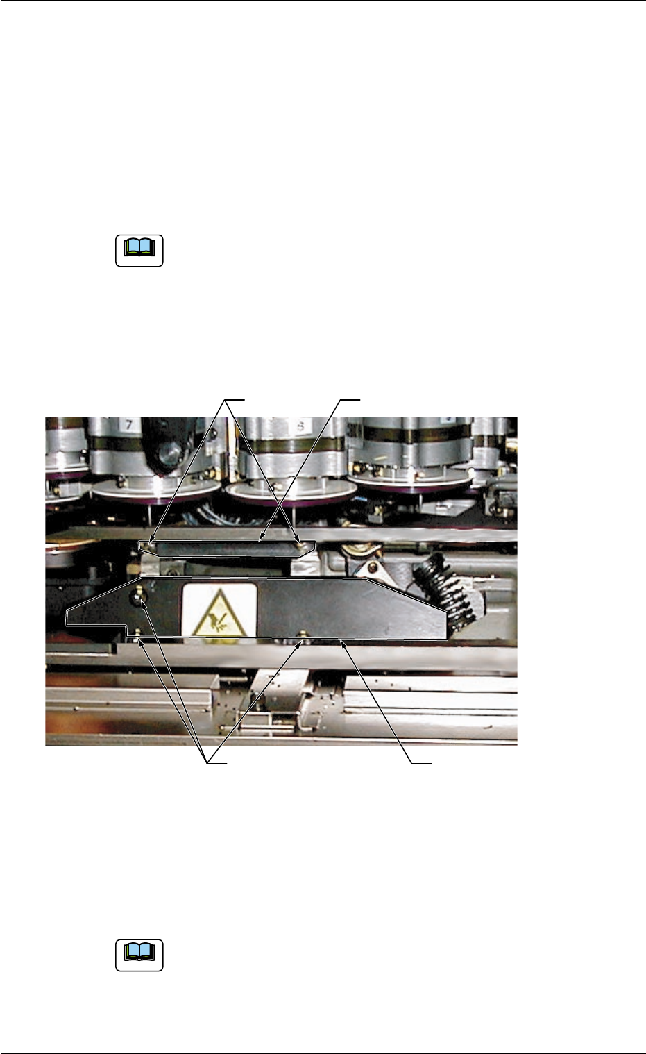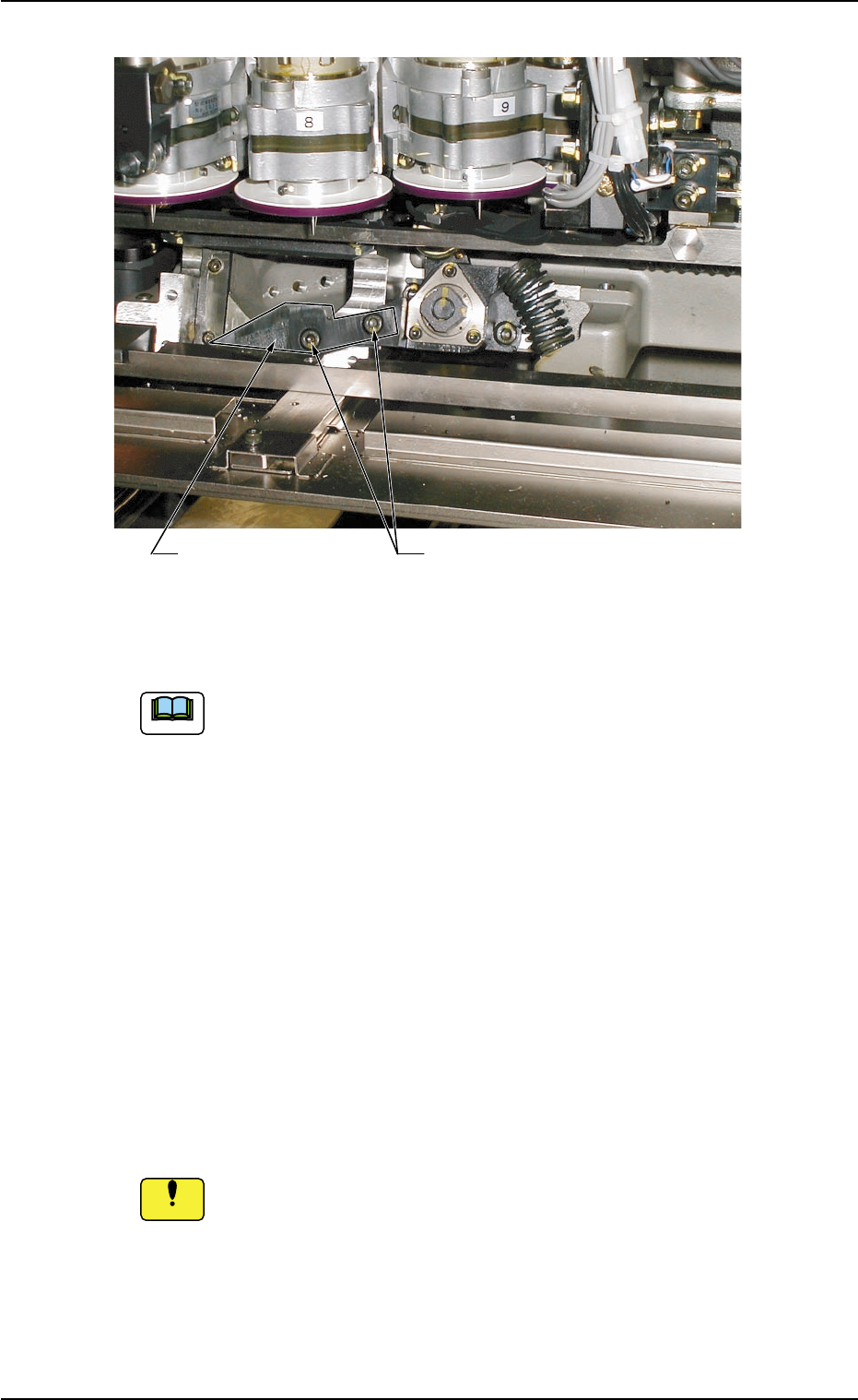 (7) Attach the new lower blade holding plate and secure it with Bolts B