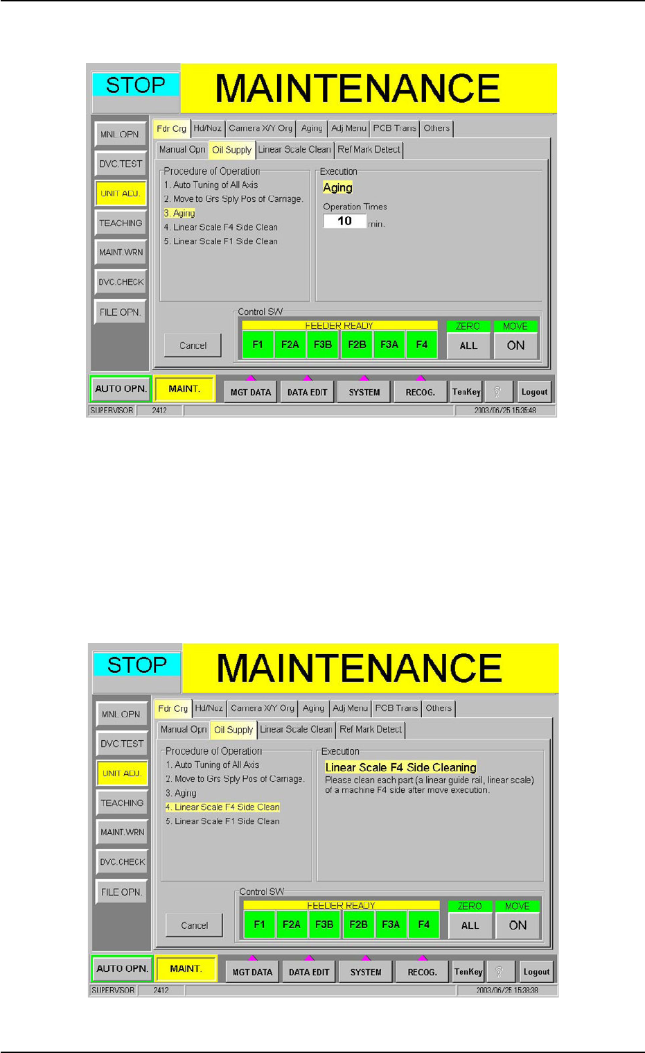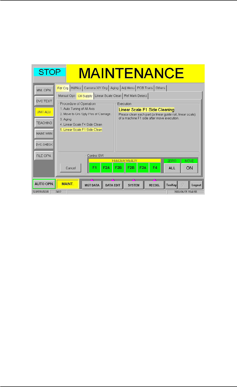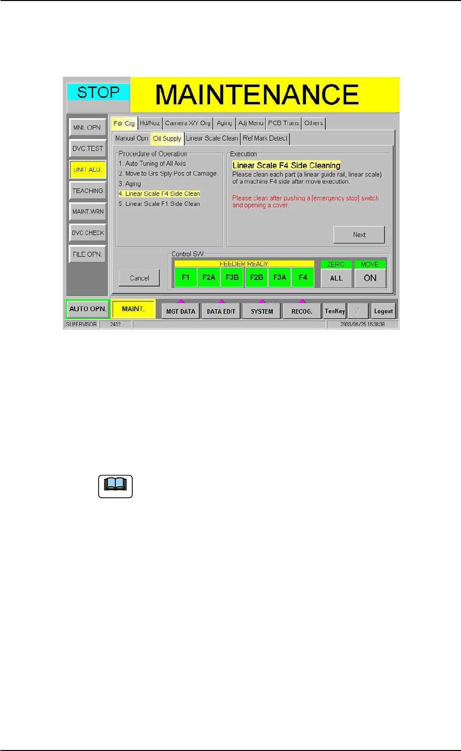 1.4 Maintenance Method (1 1) When the [ENABLE] button on the operation panel is pressed in two seconds after the [ON] button (entitled "MOVE"), the following sheet appears. Fig. 4A85-7 (12) Press the [EMERGENCY…