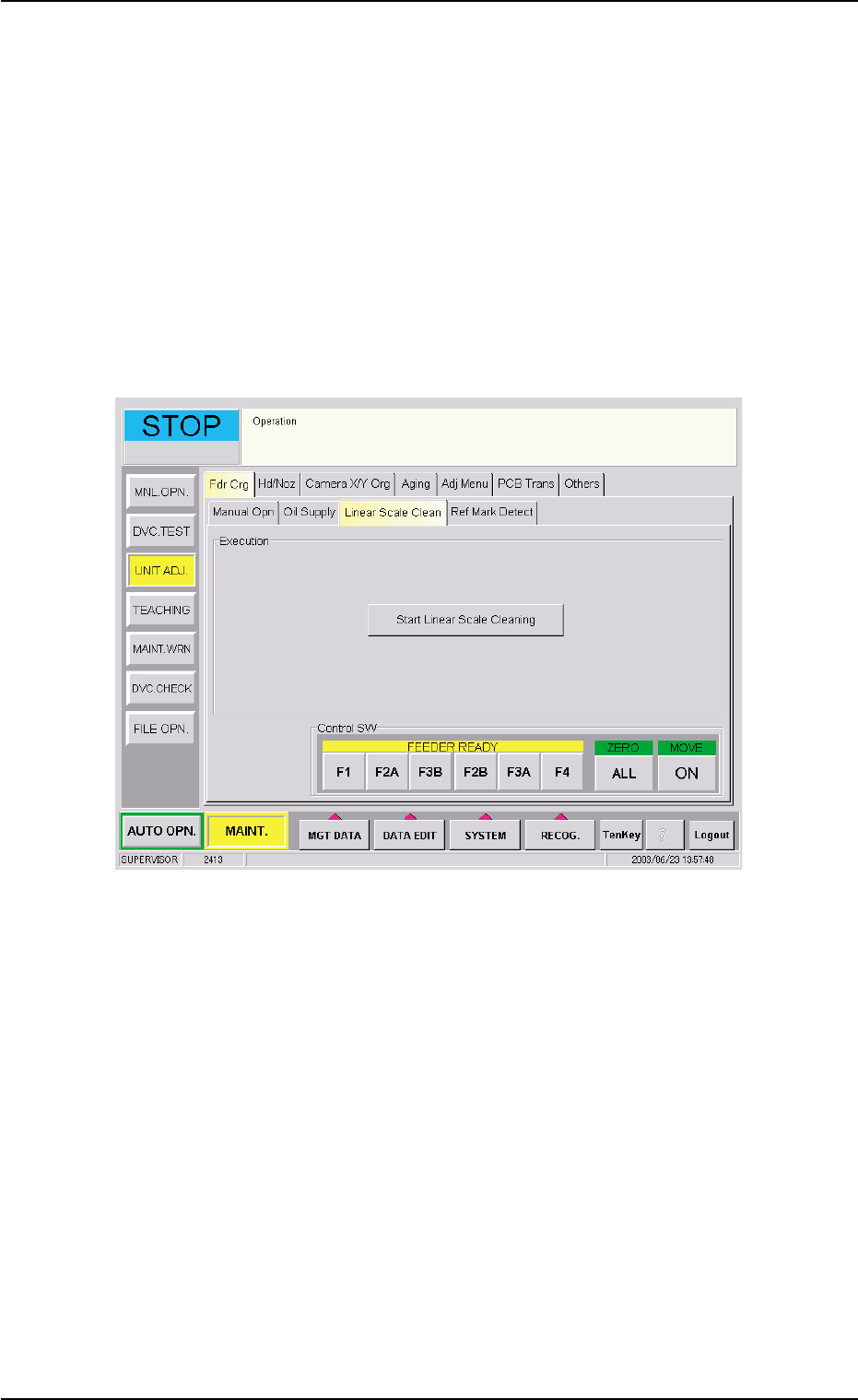 (1) When the [Linear Scale Clean] tab is pressed in the "Fdr Crg" tab