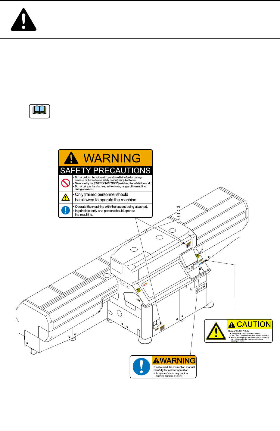 Safe-25 AIM01E-P Safety Precautions Fig. 1X25 Front V iew 1 0502-002 Location of Alert Labels The alert labels are af fixed on dangerous and caution-required areas. Refer to "Alert Labels and Description" for d…
