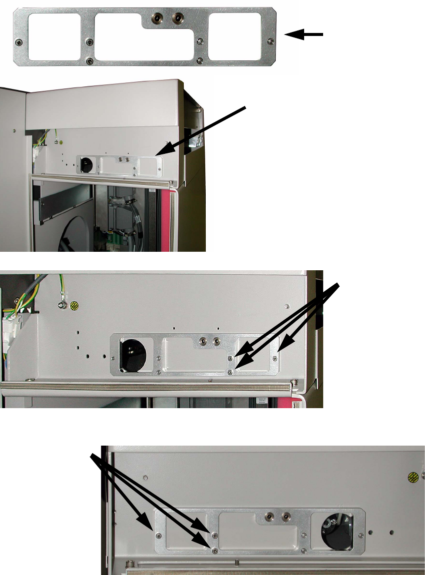 Retrofit instructions: Flexible dual conveyo r, SIPLACE D4 04/2007 Edition 26 : Screw the drilling gauge to the out side of the extension kit underneath the cover (Flex conveyor drilling template, HS -60/D4 (i tem no.: 0…