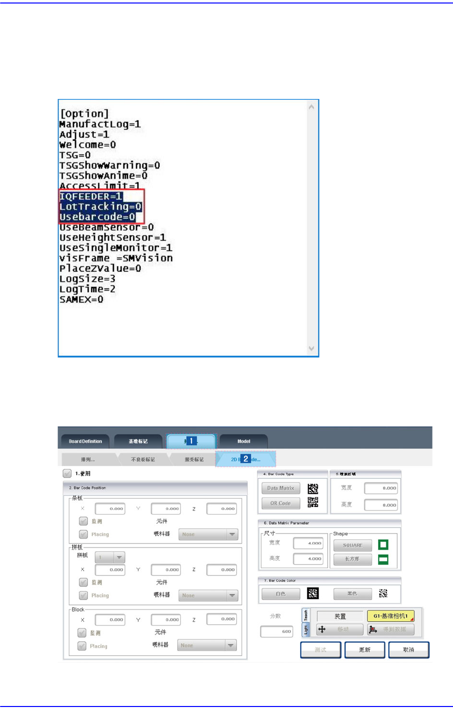 选择供应2D 条形码的供料器,这些2D条形码贴装在板(Board)/阵列(Array)/