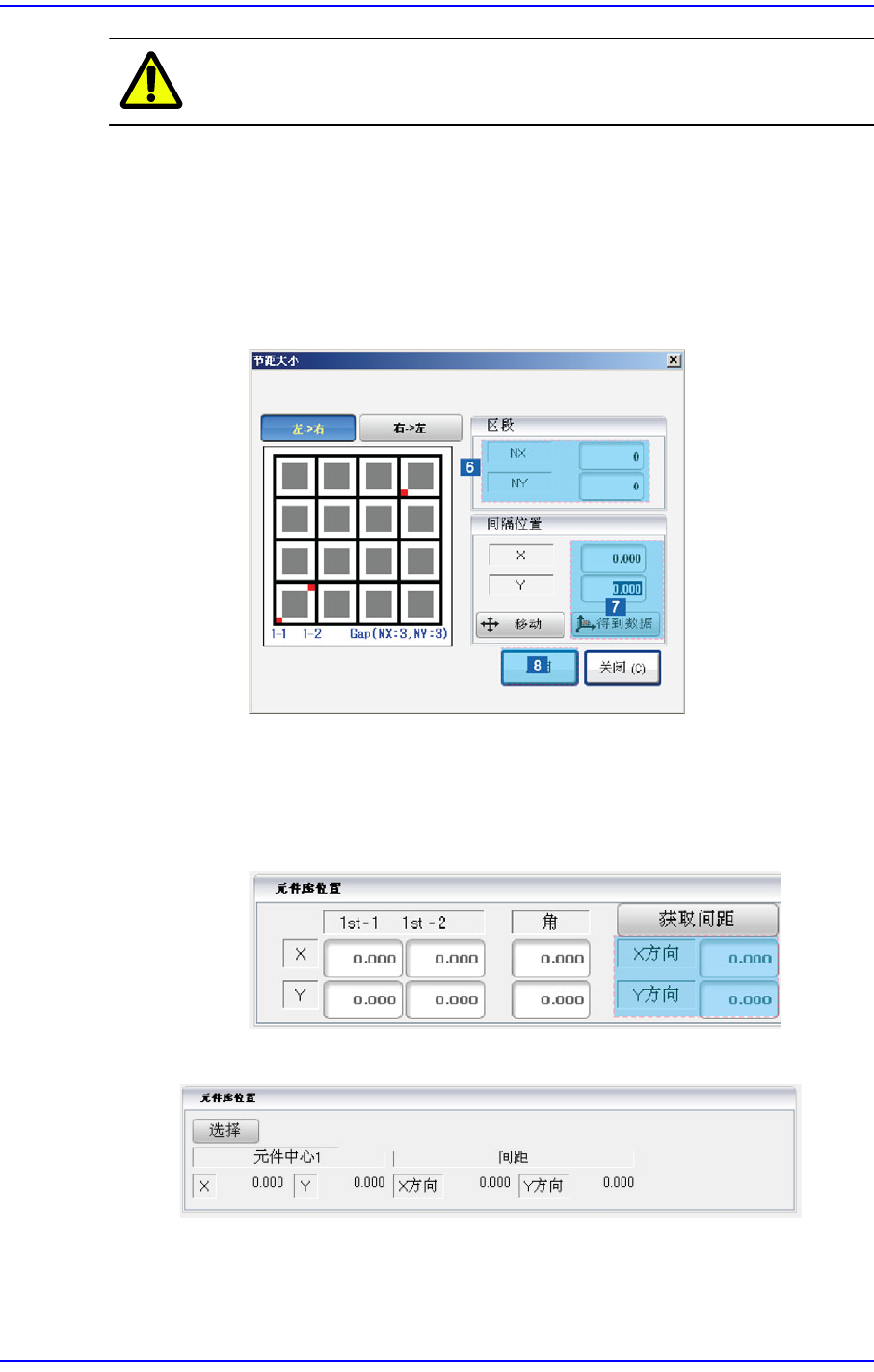 (5) 为了获得拼块间Pitch的间隔,请按 <获取间距>键。