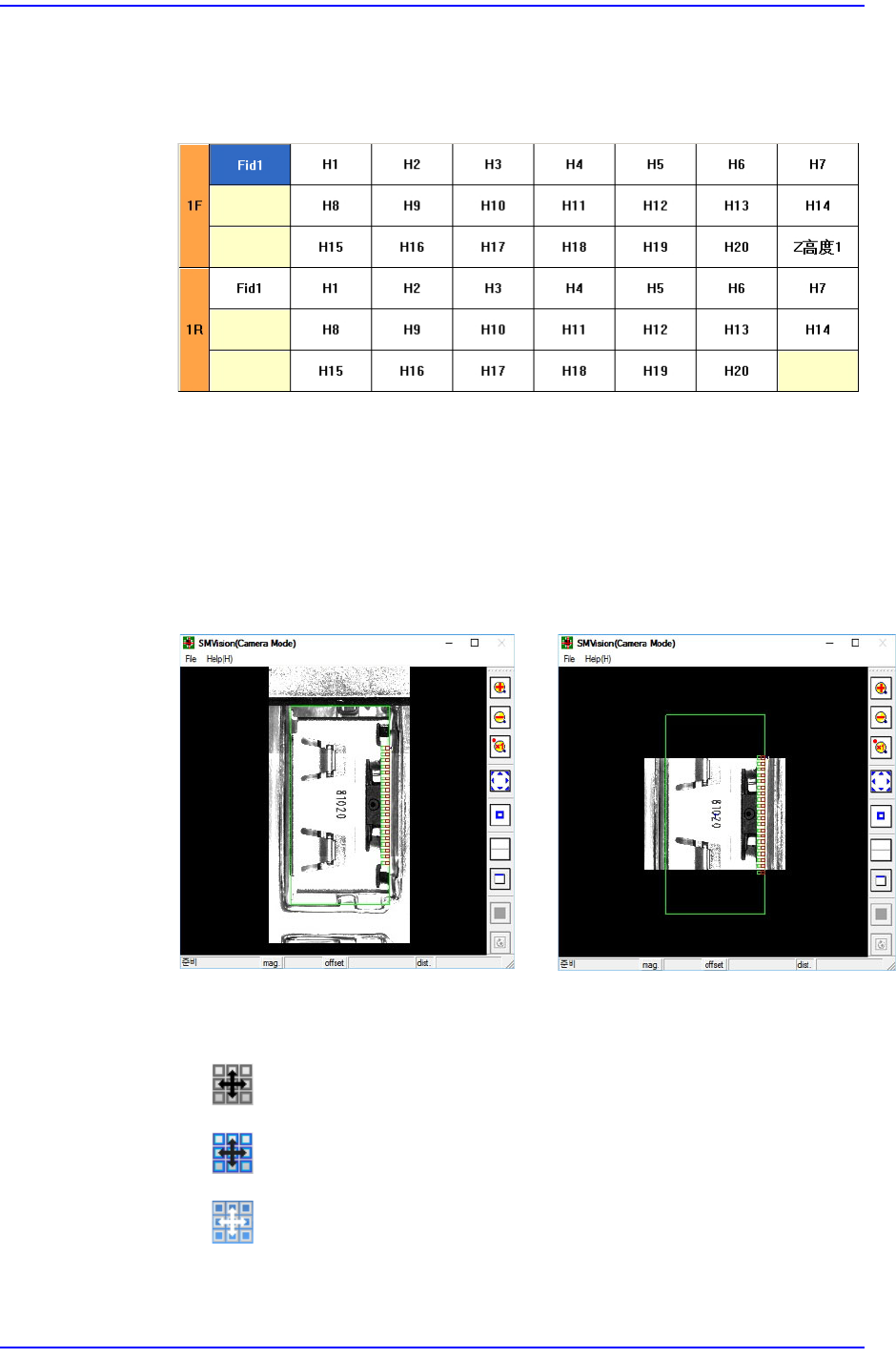 依次连续移动贴装点时按下此按钮。 把Fiducial camera依次移动到<Grid>领域