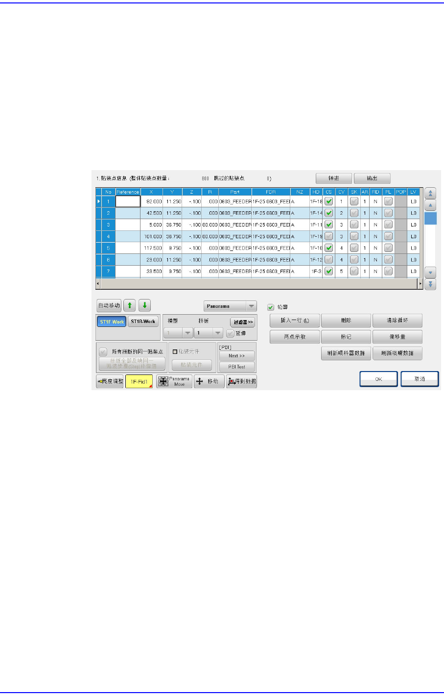 首先选择要在<Grid>领域查看的贴装点(行)后选择此校验框则在<Grid>领