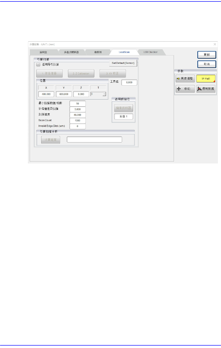 可设置与Lead Scan模块相关的数据。选择该对话框时将出现下列对话框。