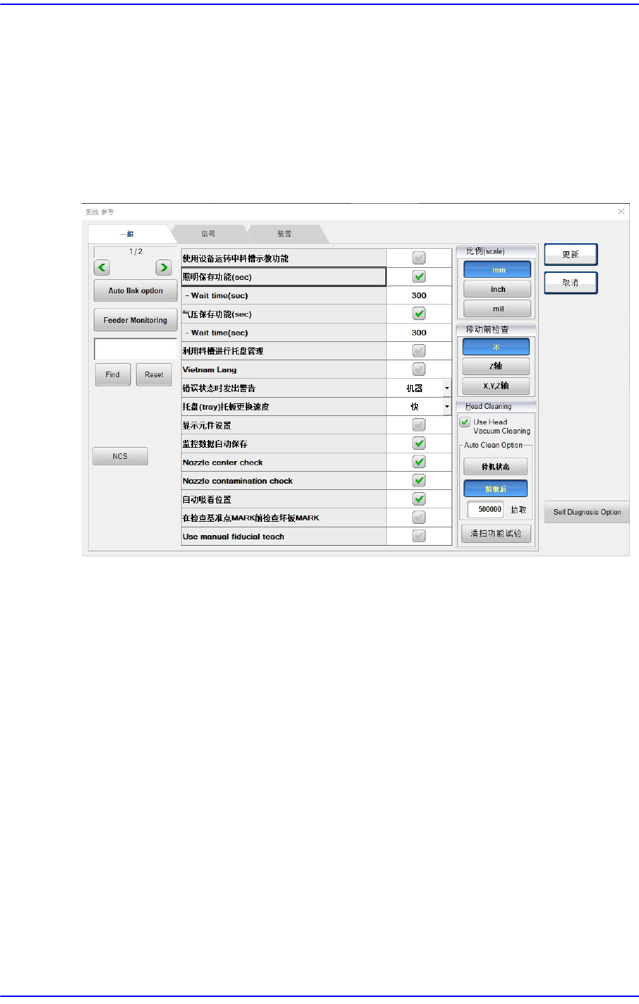 13-33 系统设置 <Ejector pin 限制检查 > 复选框 喷射器顶针是消耗品, 我们建议定期更换它们 , 因 为顶针尖端可能会随着使用 次数和使用时间而磨损。 如果选中此复选框, 您可以设置喷射器顶针的 使用次数和使用期限, 并在超过 喷射器顶针使用次数或使用期限时 通知用户。 详细内容请参考 “8.2.3.5. 时间 / Ejector” 。 <Use Pin Height Check> 复…
