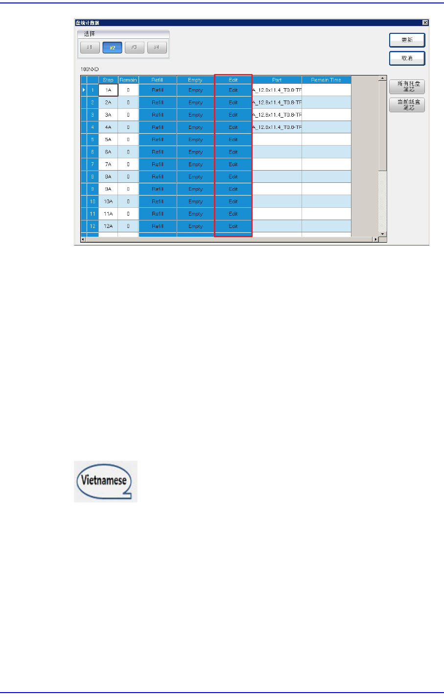选择该校验盒时,将激活“Tray Cnt Information” 窗口的 Edit> 列。有关该功能的