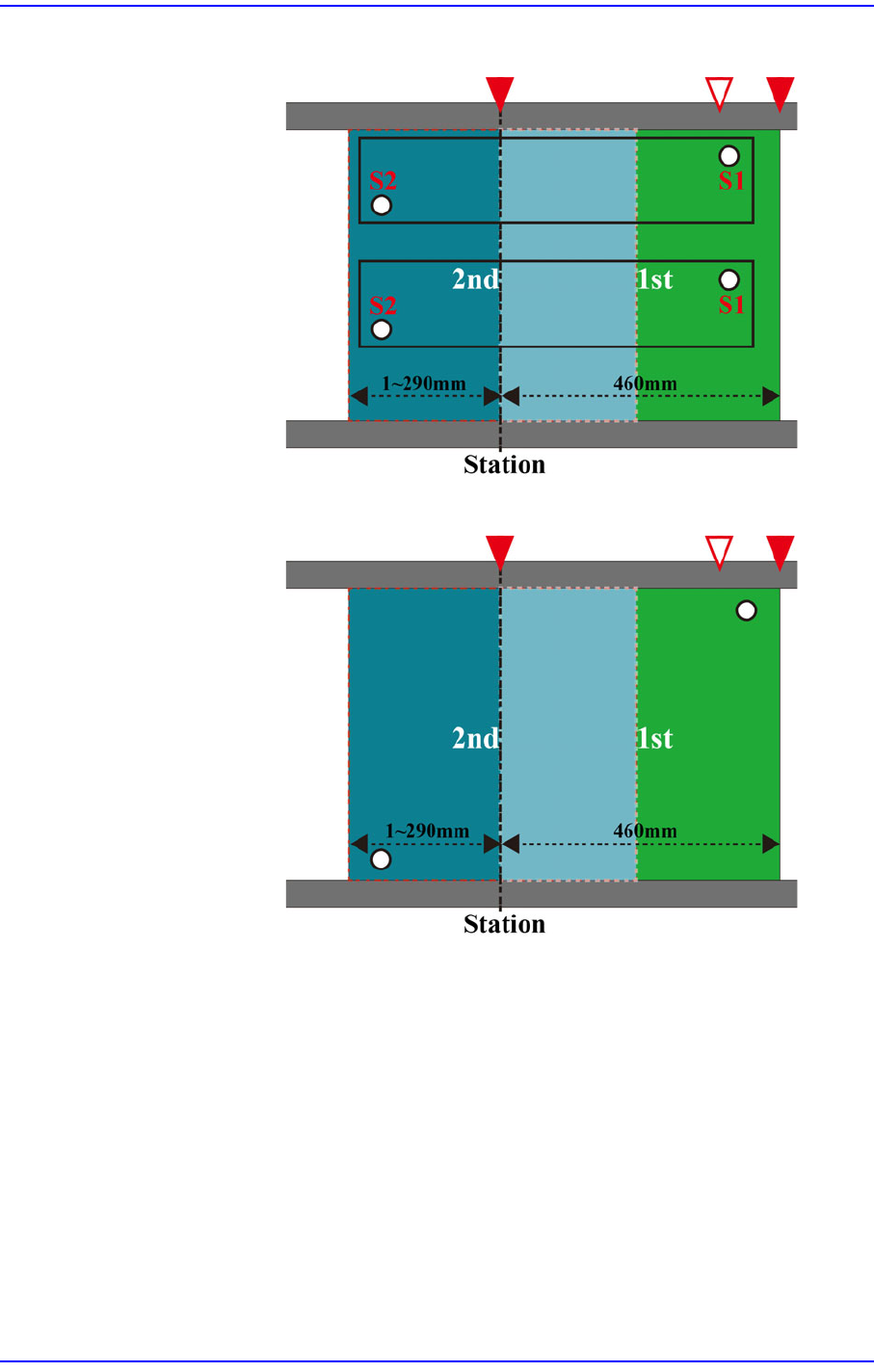 2-13 板的定义 Array/Block 基 准标记横跨两个贴装领域时 只有 2 个 Panel 基准 标记时 2) 无法贴装元件时 第二个贴装领域上存在 着 Bad 标记 /Acce pt 标记 /2D Barcode 时 在第一个贴装领域无法识别 Bad 标记 /Accept 标记 /2D Barcode 的话, 无法使用 Bad 标记 /Accept 标记 /2D Barcode 。