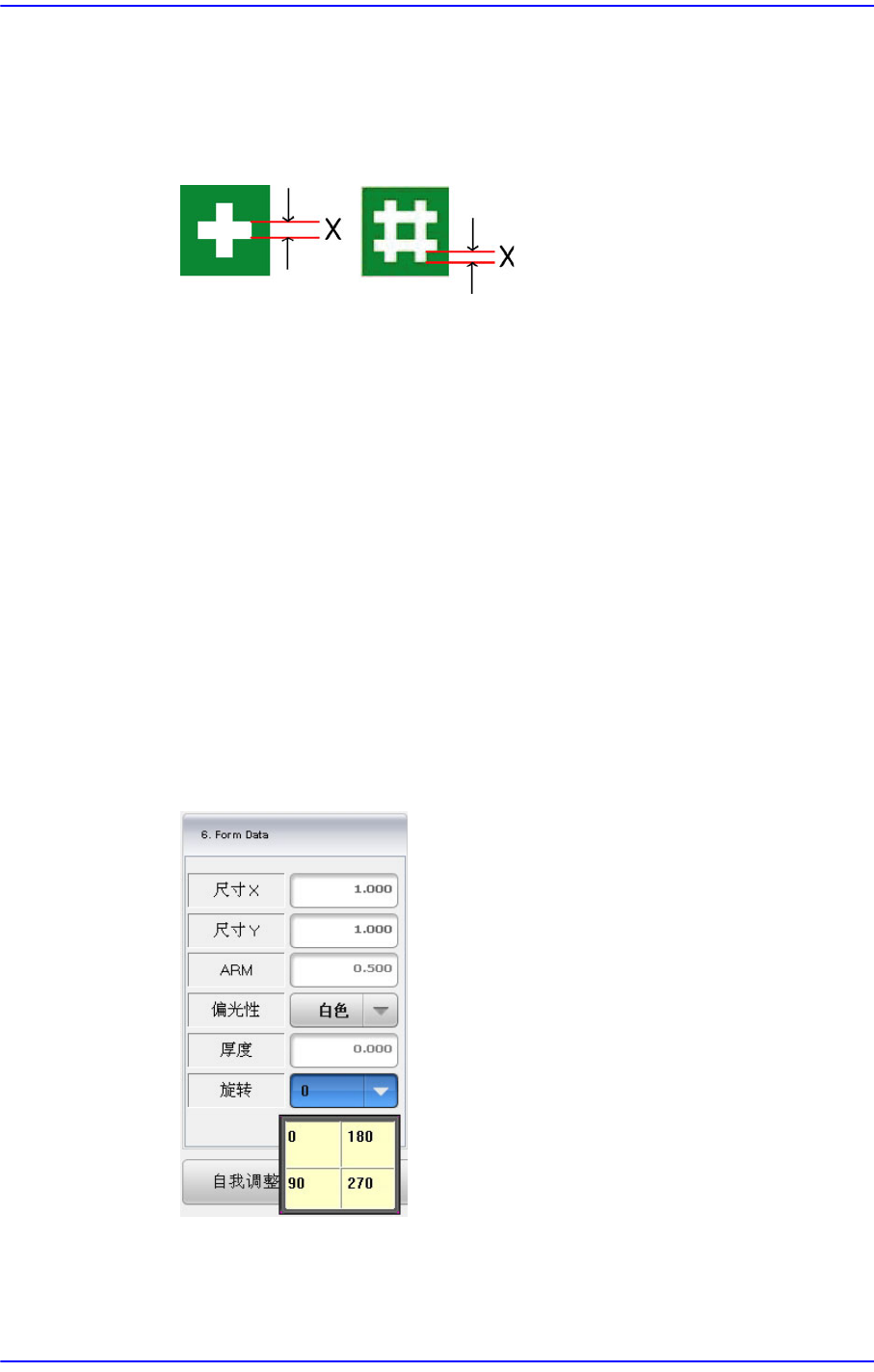基准标形状为十字形时,在<翅膀大小> 编辑框中准确示教对应下面的X的