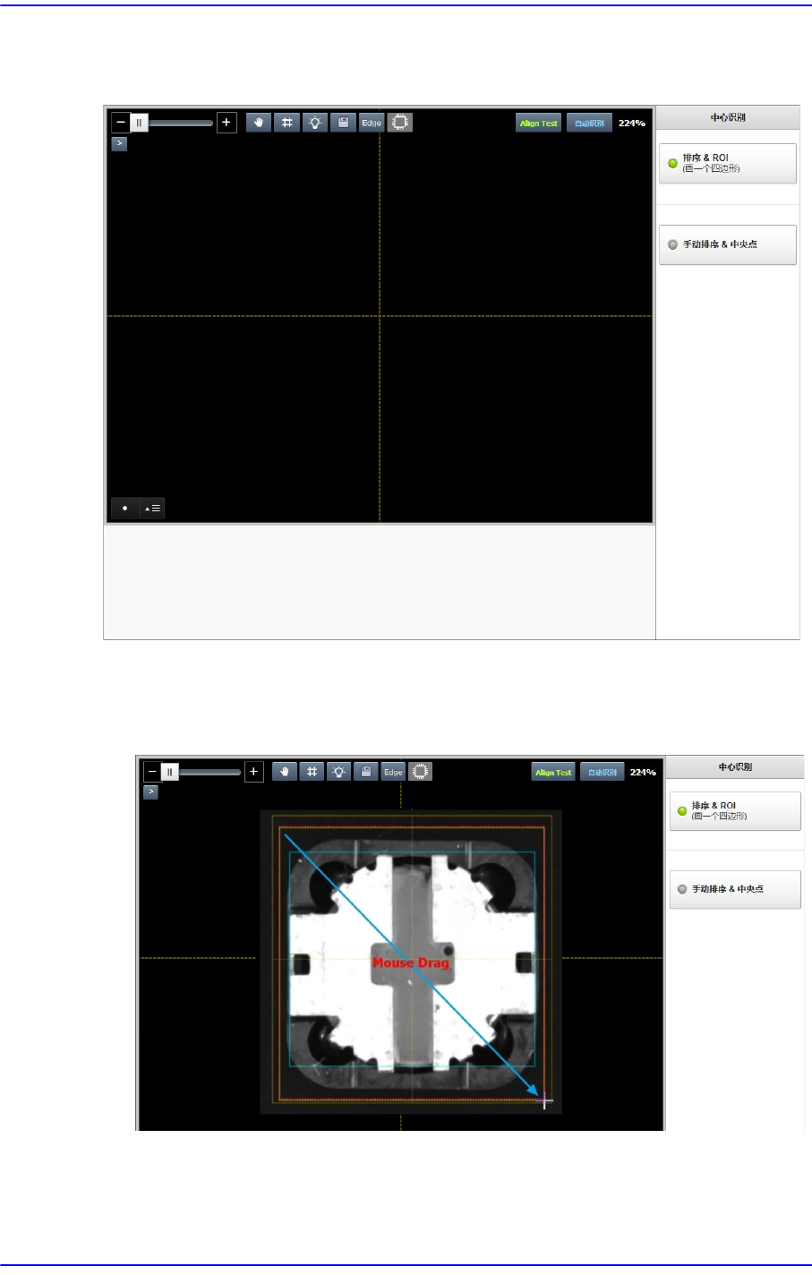 可利用鼠标在视觉窗内手动设定元件的检查范围及元件的中心。