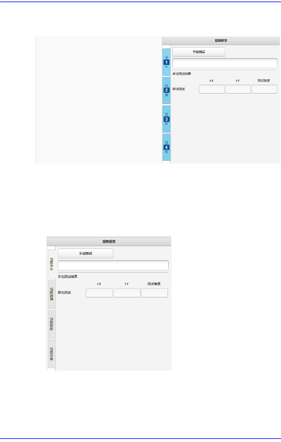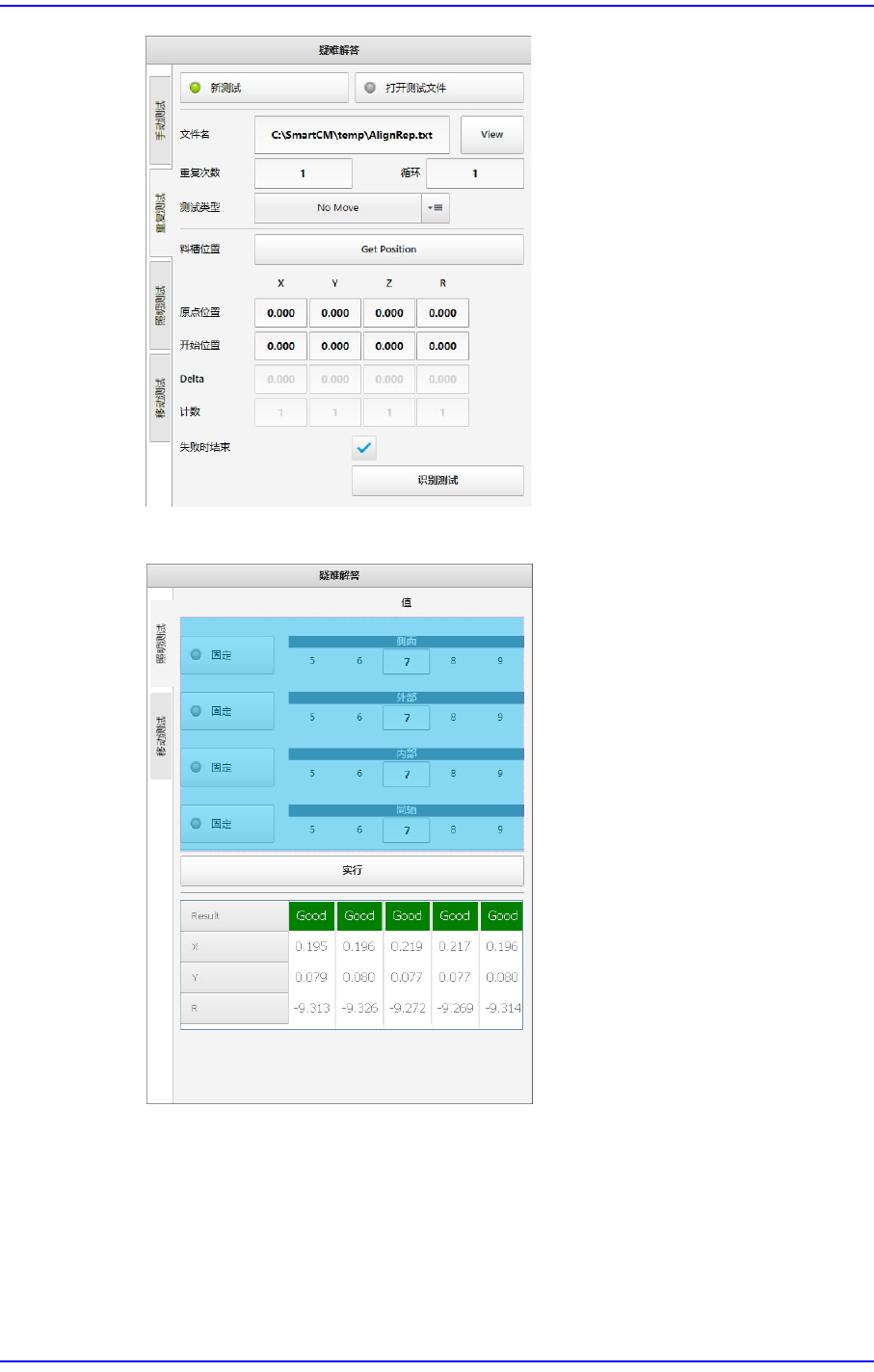 3-84 Cutting-edge Modular Mounter HM Series A dministrator's Guide 3.2.2.8. 疑难解答 这些功能在元件识别方面发生问题 时有助于解决问题。 1: 手动测试 2: 重复测试 3: 照明测试 4: 移动测试 < 手动测试 > 选项 卡 对该项内容稍后将做更新。 < 重复测试 > 选项 卡 对该项内容稍后将做更新。