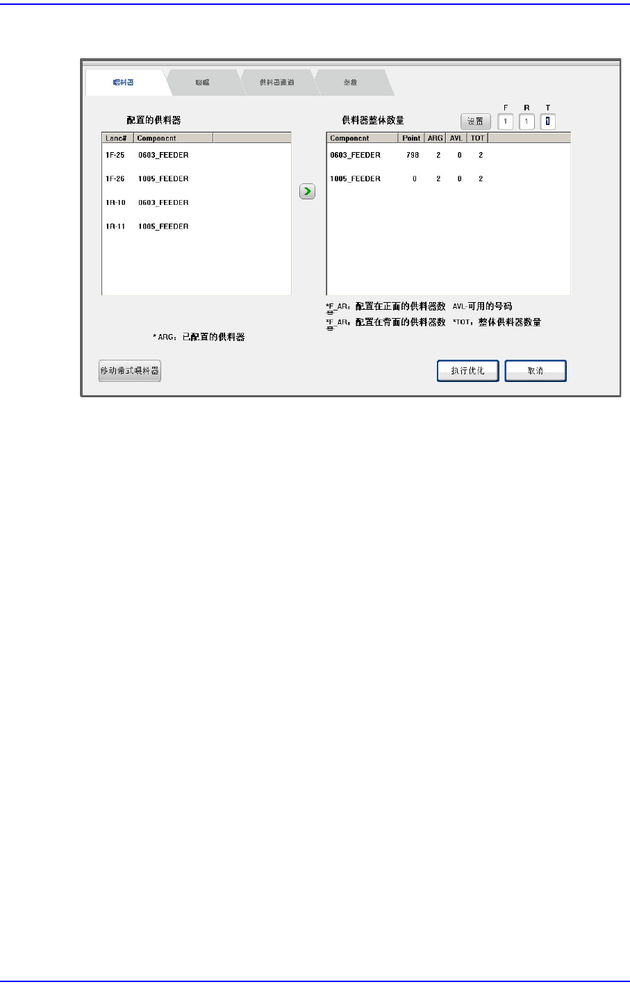忽略已经配置的所有带式喂料器,重新配置所有带式喂料器时,单击<移动带式