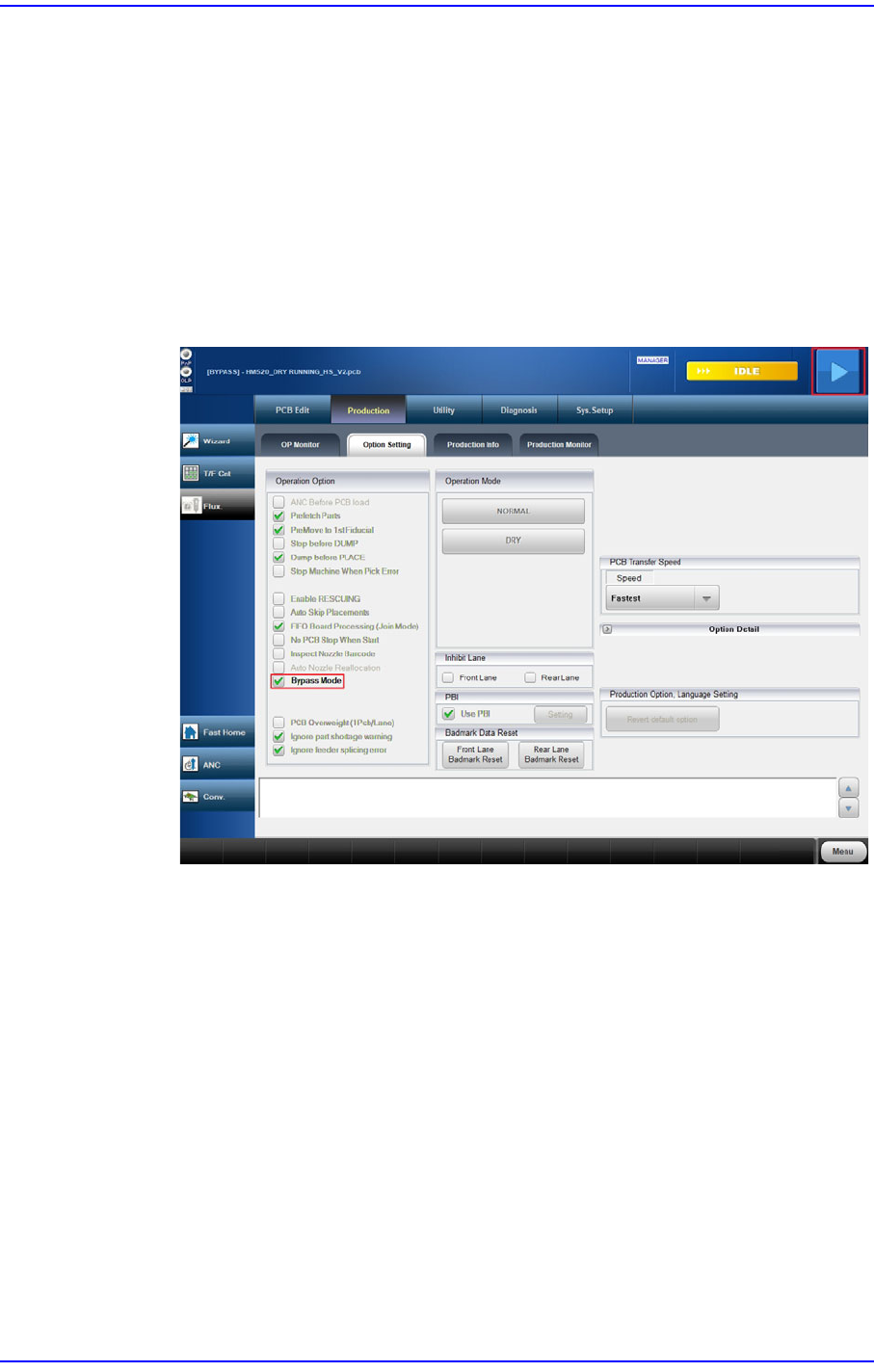 8-15 生产设置 < 使用 识别吸嘴条形码 > 校验框 该功能可以在 ANC 更换吸 嘴时识别吸嘴条形码以确认吸嘴是 否正确。 <Auto Nozzle Reallocation> 复选框 当前安装在 ANC 中的吸嘴布置与 PCB 文件的吸嘴布置不同时, 此功能可将 ANC 的吸嘴布置更改为 PCB 文件的吸嘴布置。 < 旁路模式 > 复选框 不针对搬入输送机的 PCB 进行贴装作业而…