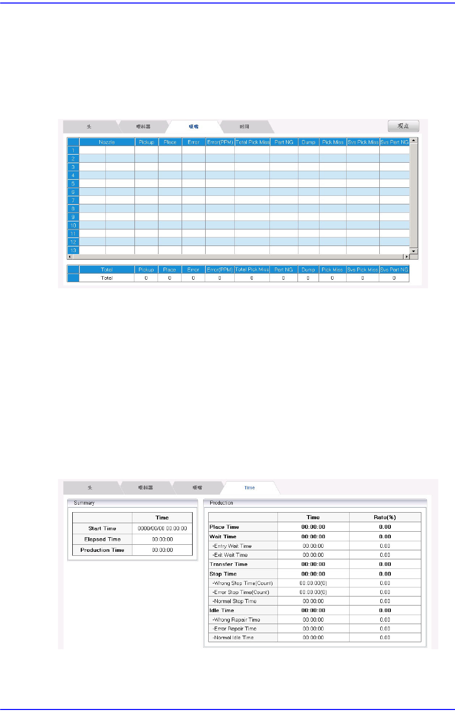 表示各磁头的生产信息,显示跟贴装有关的全部统计信息。