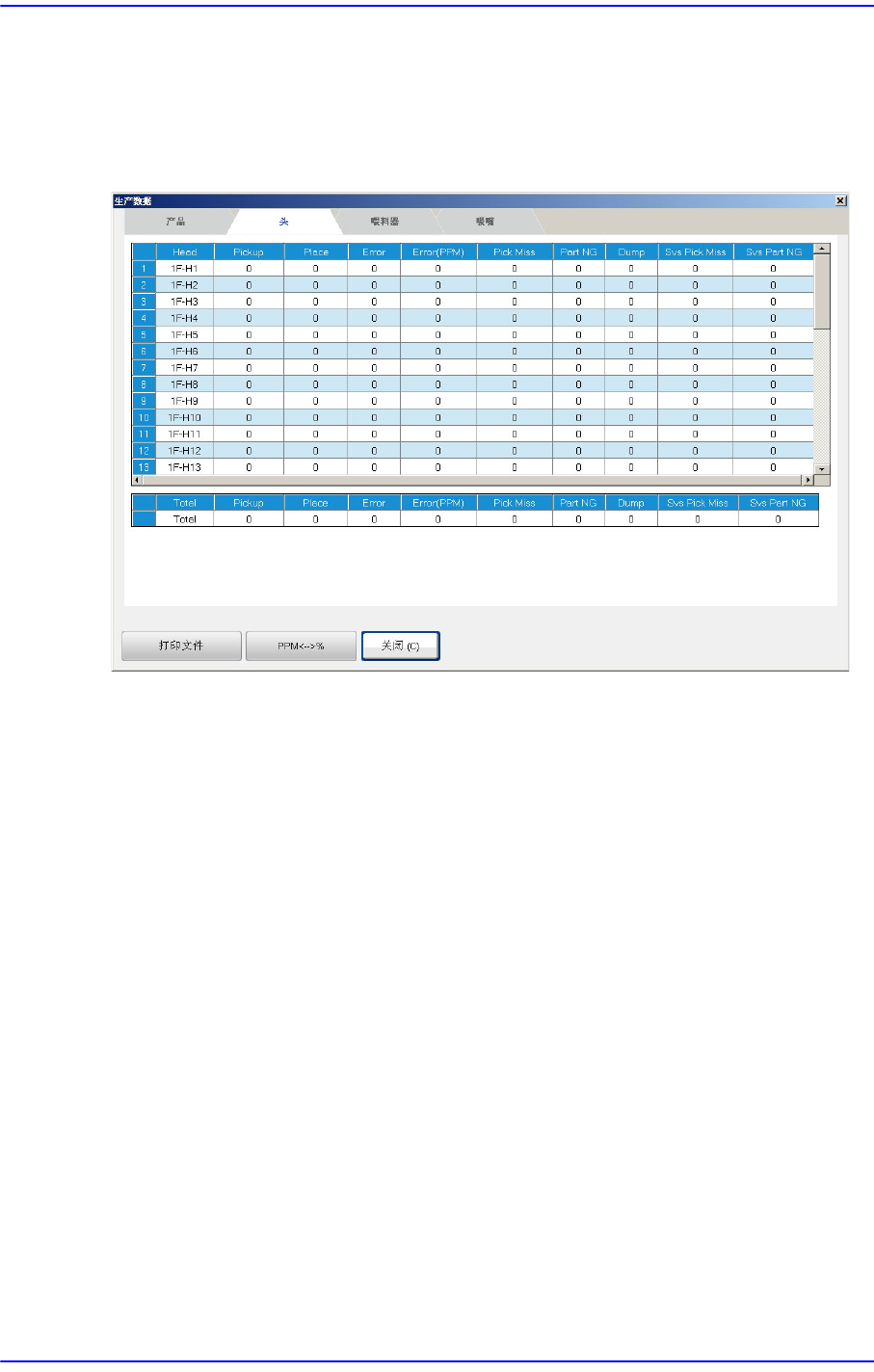 显示各贴装头的生产信息,并且显示出有关贴装的整体统计信息。详细内容请参考
