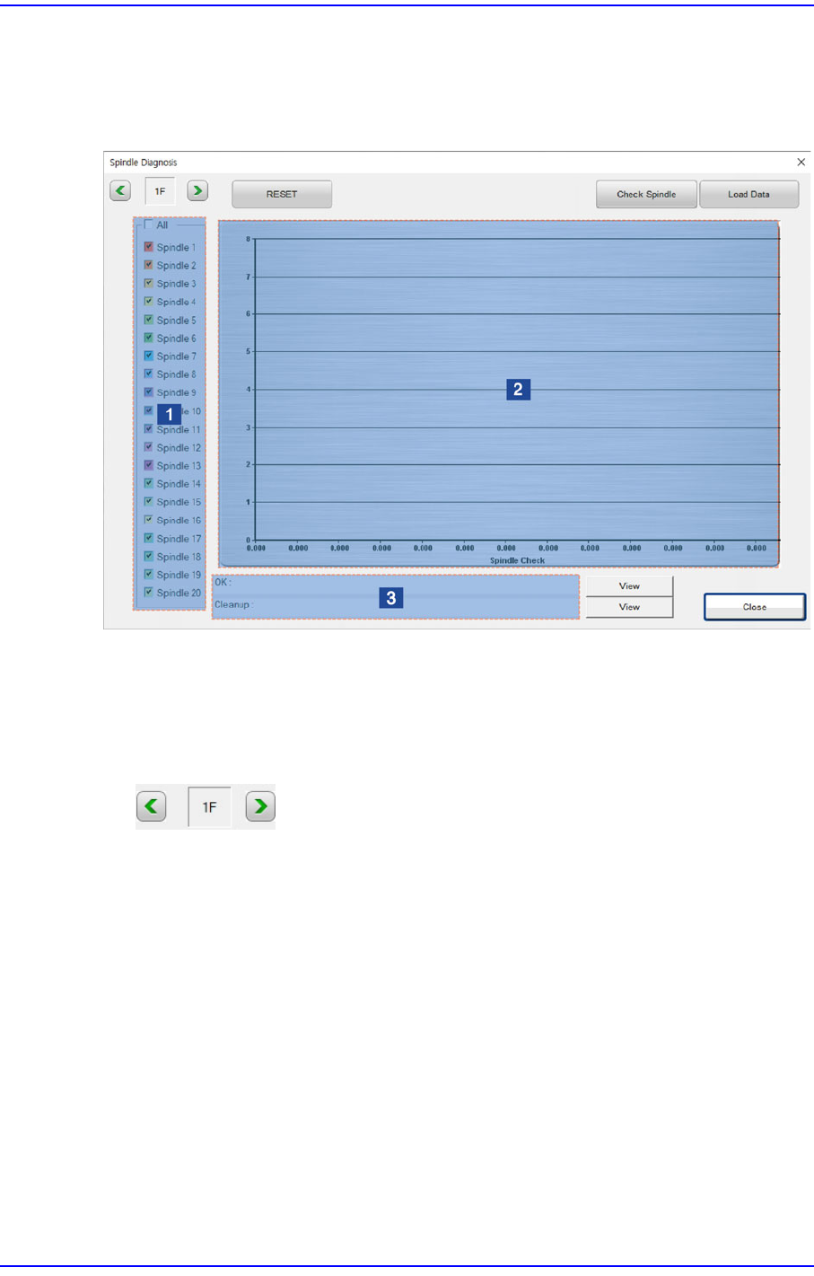 以图表显示主轴的检查结果。该图表的值将根据“Result” 区域内选择的<View>