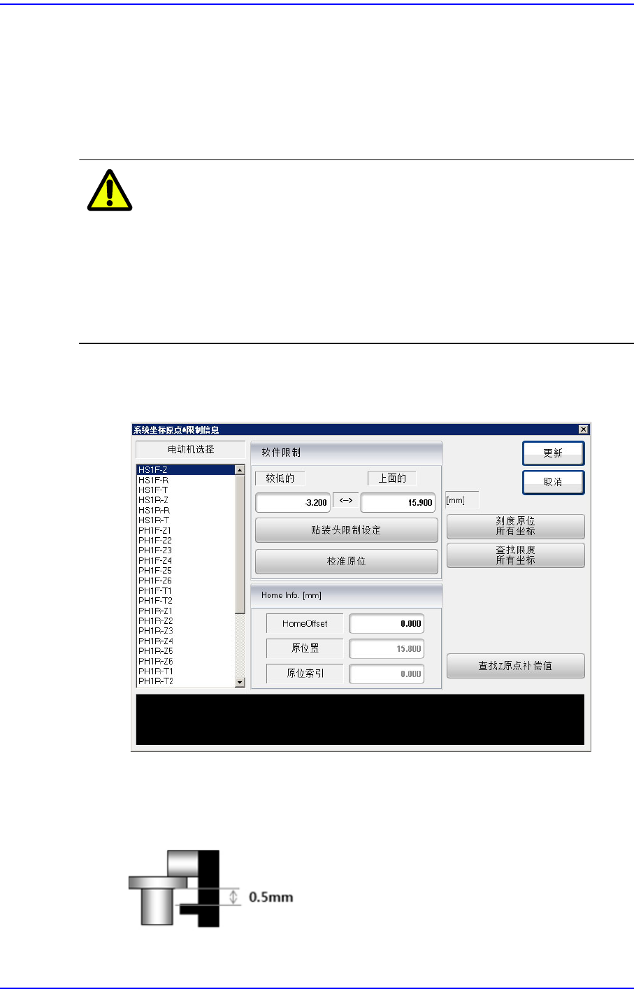 注意 在没有实行<Find Z Home Offset>的情形下进行返回原点动作