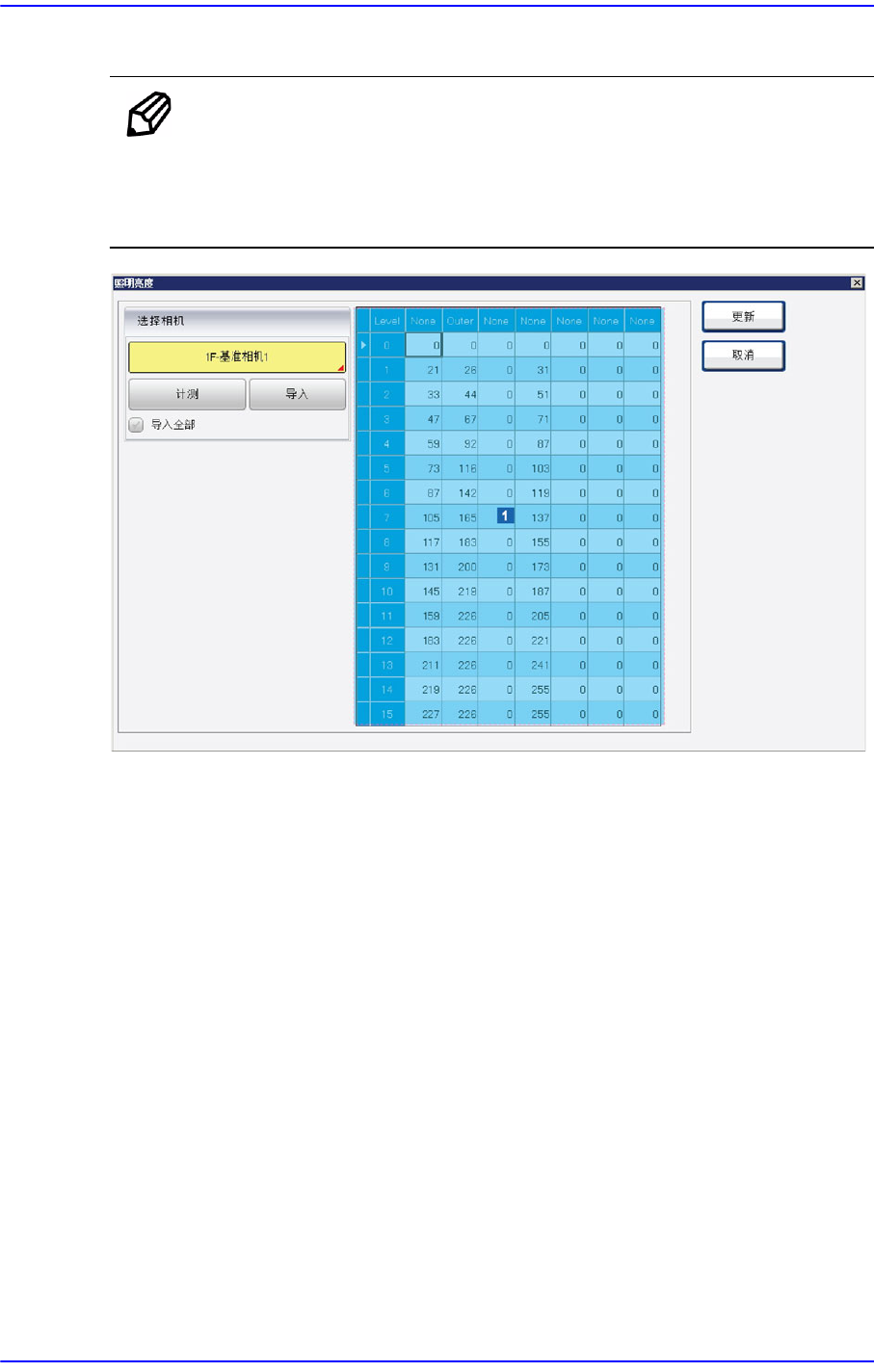 校正摄像机的照明亮度。