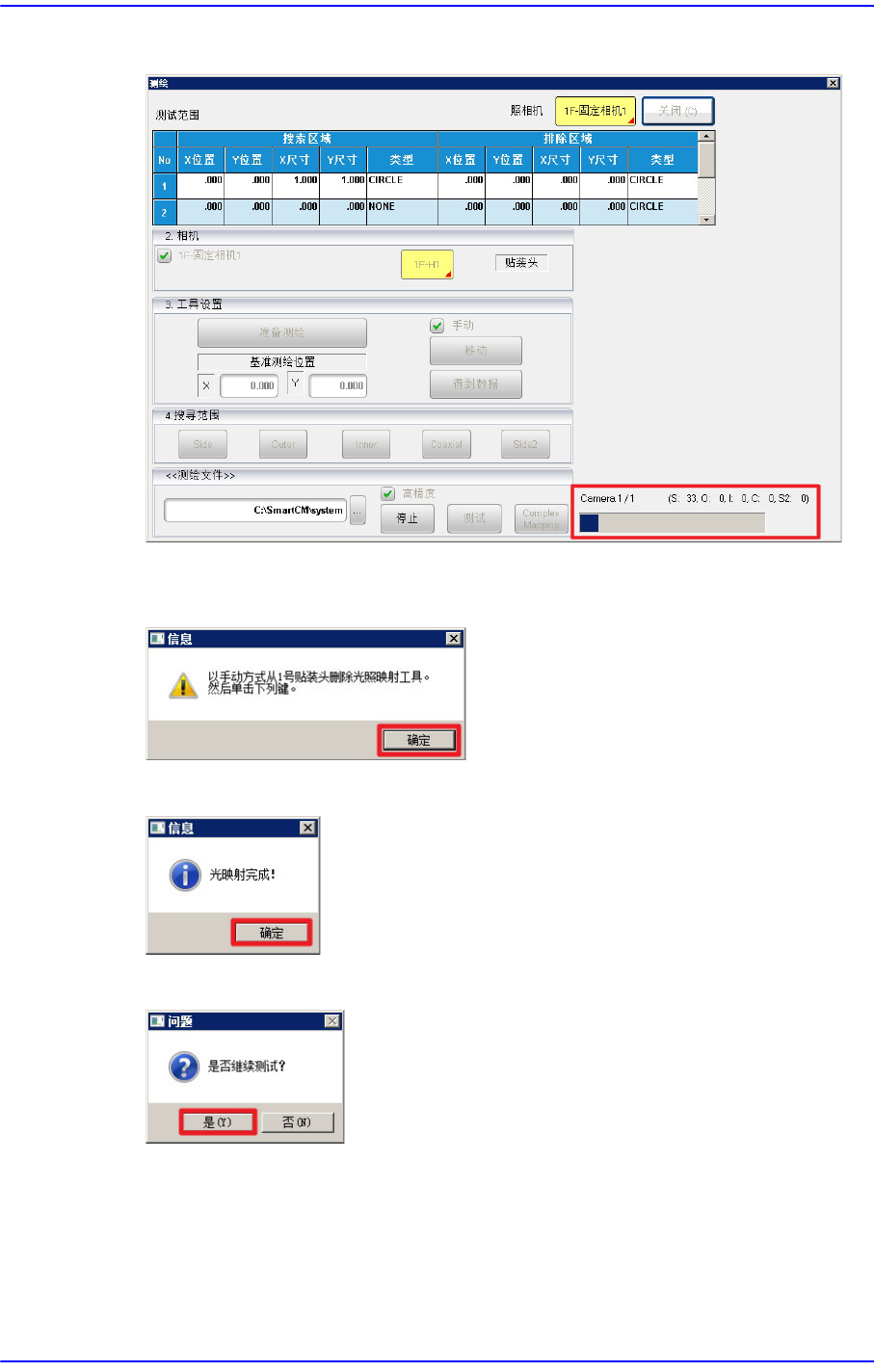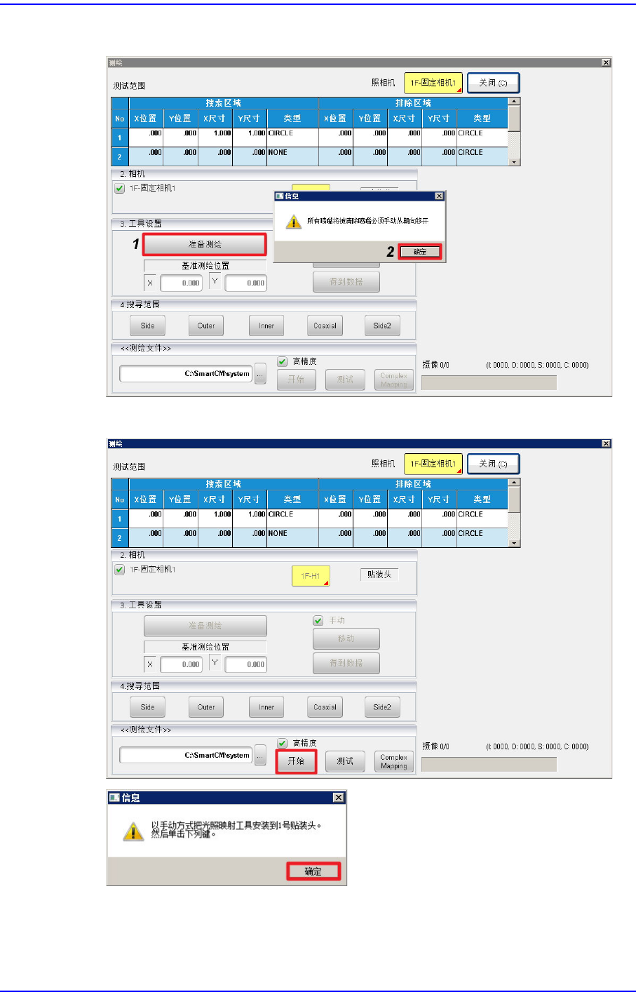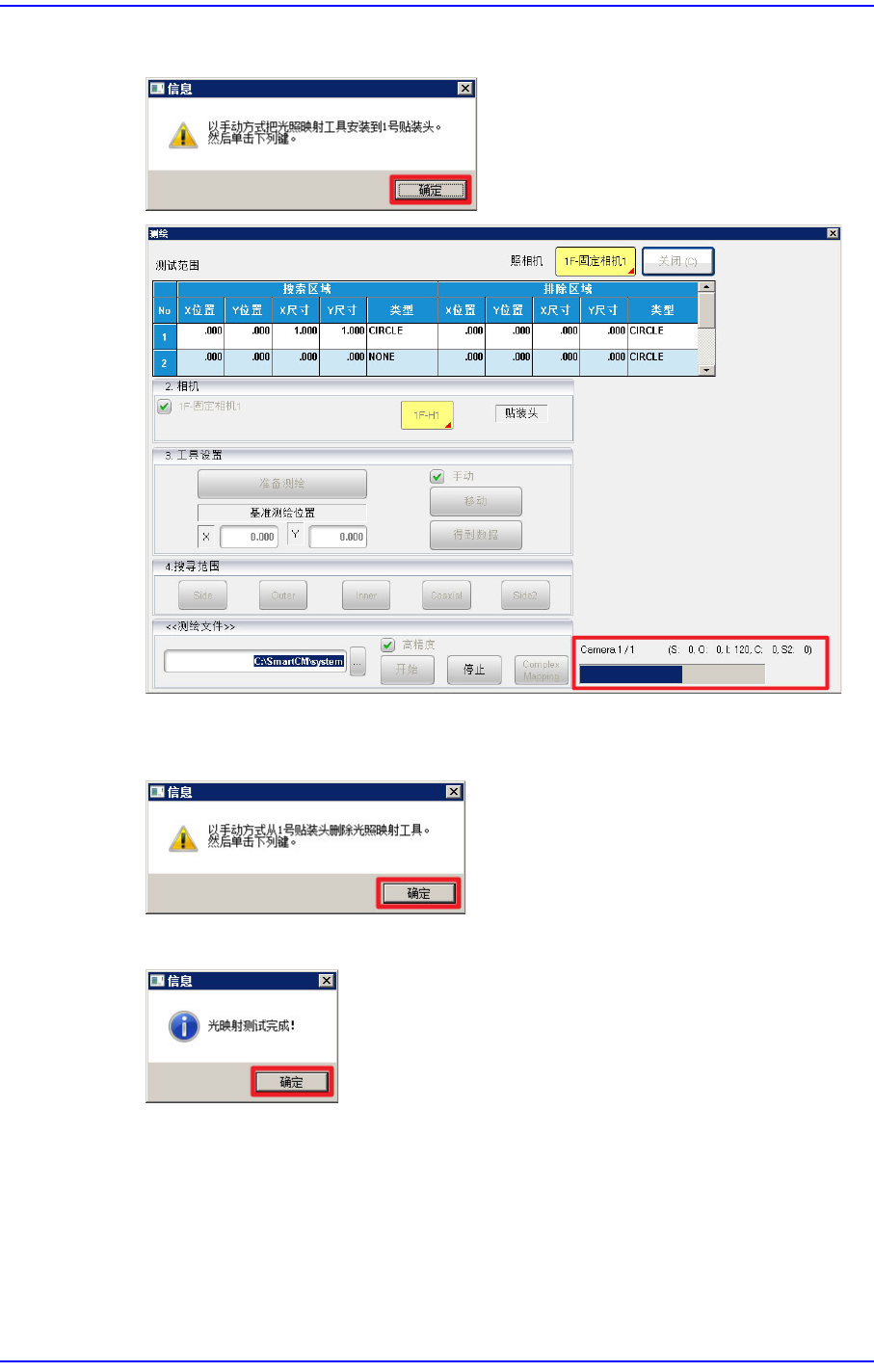 10. 为了进行测试,把照明映射工具安装到1号贴装头后按下<确定> 按钮。